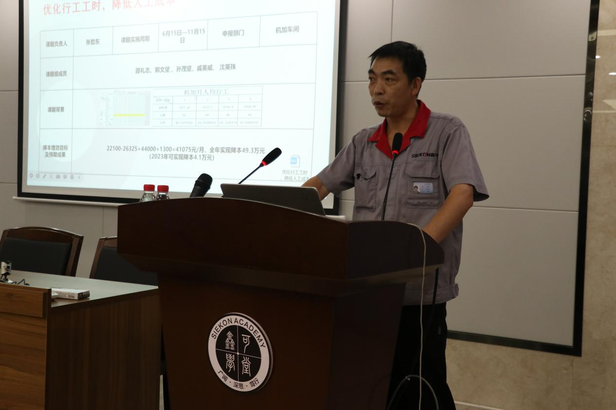 為推進落實在鑫可20周年慶典上發布的“反浪費、降成本”行動方案,2023年7月5日晚,公司在鑫可學堂舉行了“反浪費,降成本”十大課題發布會暨《IE八大浪費》培訓活動。公司常務副總經理馬強、副總經理兼經營管理委員會副主任陳光耀、副總經理龔峰、財務總監郭蓮芳、行政總監黃建宇、各部門負責人及各降本課題組成員近60人參加了本次發布會,副總經理陳光耀主持了本次發布會。