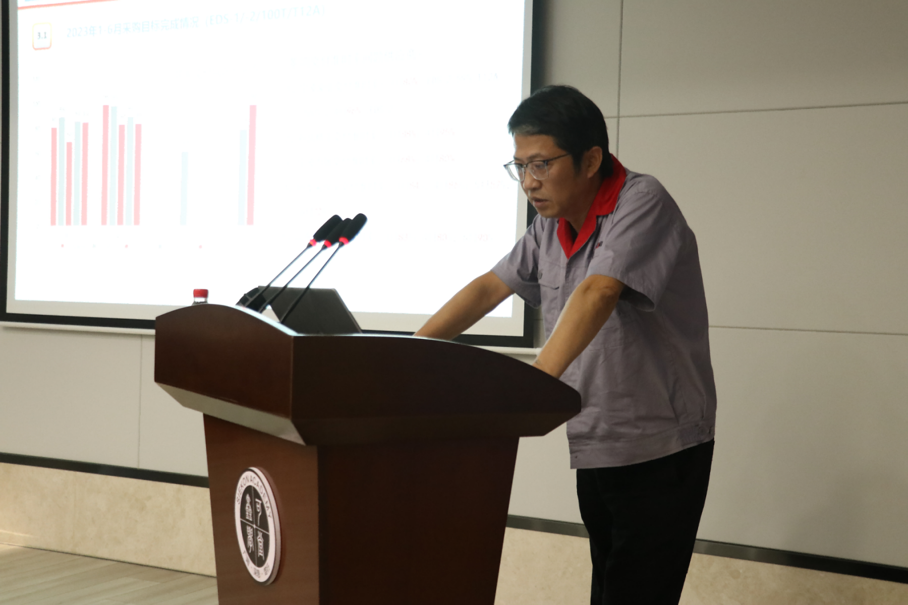會議伊始,公司常務(wù)副總經(jīng)理馬強(qiáng)作了2023年度中期經(jīng)營工作報(bào)告。馬總結(jié)合各項(xiàng)經(jīng)營指標(biāo)完成情況,對公司上半年公司在產(chǎn)銷量、營收、利潤、成本、質(zhì)量、存貨管理等經(jīng)營工作進(jìn)行了全面總結(jié)和深入分析。馬總指出,上半年公司在體系制度建設(shè)、安保系統(tǒng)升級、園區(qū)秩序規(guī)范、物流倉儲和車間改善、企業(yè)文化升級等方面取得了明顯進(jìn)步,同時(shí)也客觀分析了公司在供應(yīng)鏈體系、質(zhì)量管理體系、質(zhì)量損失、異常停線、人才結(jié)構(gòu)等方面存在的痛點(diǎn)和不足。