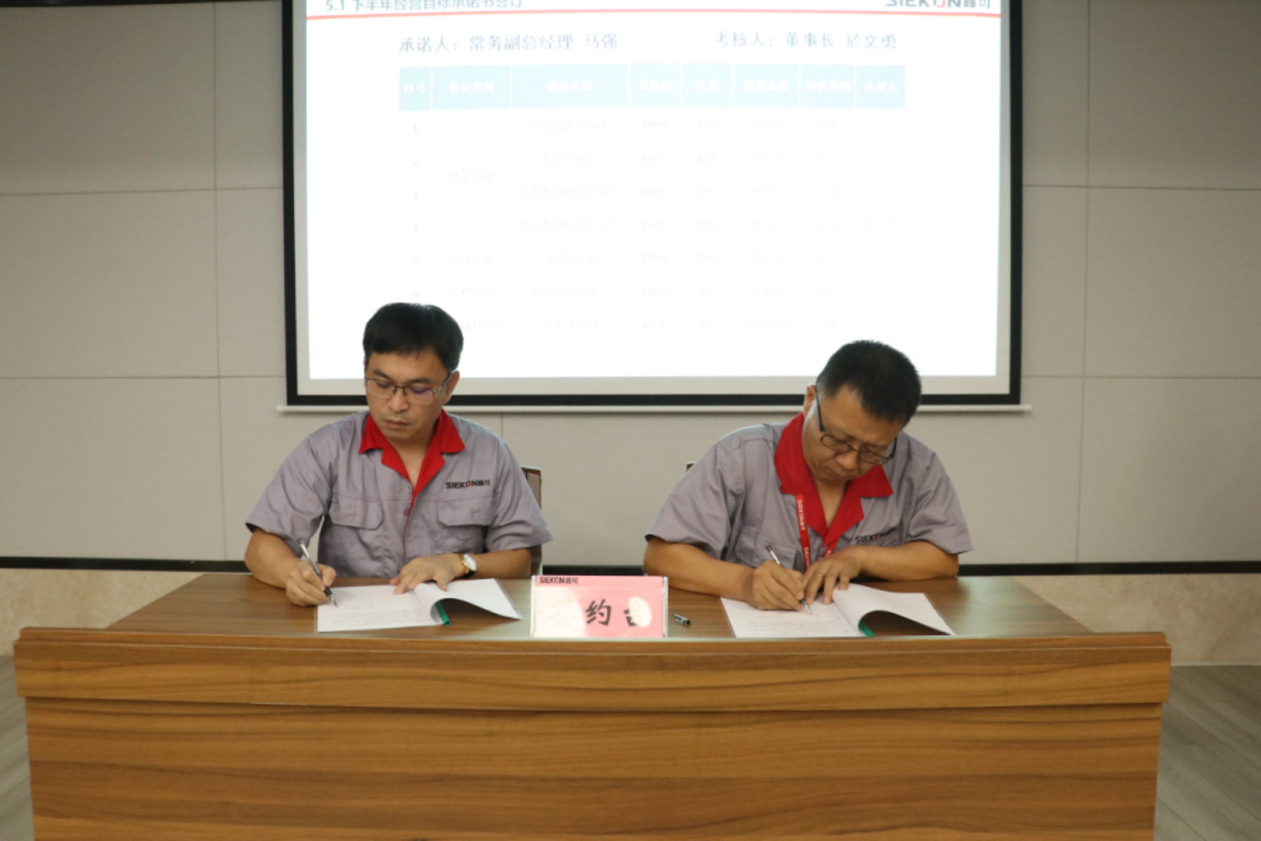 會上,董事長於文勇與副董事長兼研究院院長金建華、常務(wù)副總經(jīng)理馬強(qiáng)分別簽訂了2023年下半年經(jīng)營目標(biāo)承諾書,常務(wù)副總經(jīng)理馬強(qiáng)與副總經(jīng)理陳光耀、副總經(jīng)理龔峰、銷售總監(jiān)林文軍、財(cái)務(wù)總監(jiān)郭蓮芳、質(zhì)量總監(jiān)宋達(dá)水分別簽訂了2023年下半年經(jīng)營目標(biāo)承諾書。