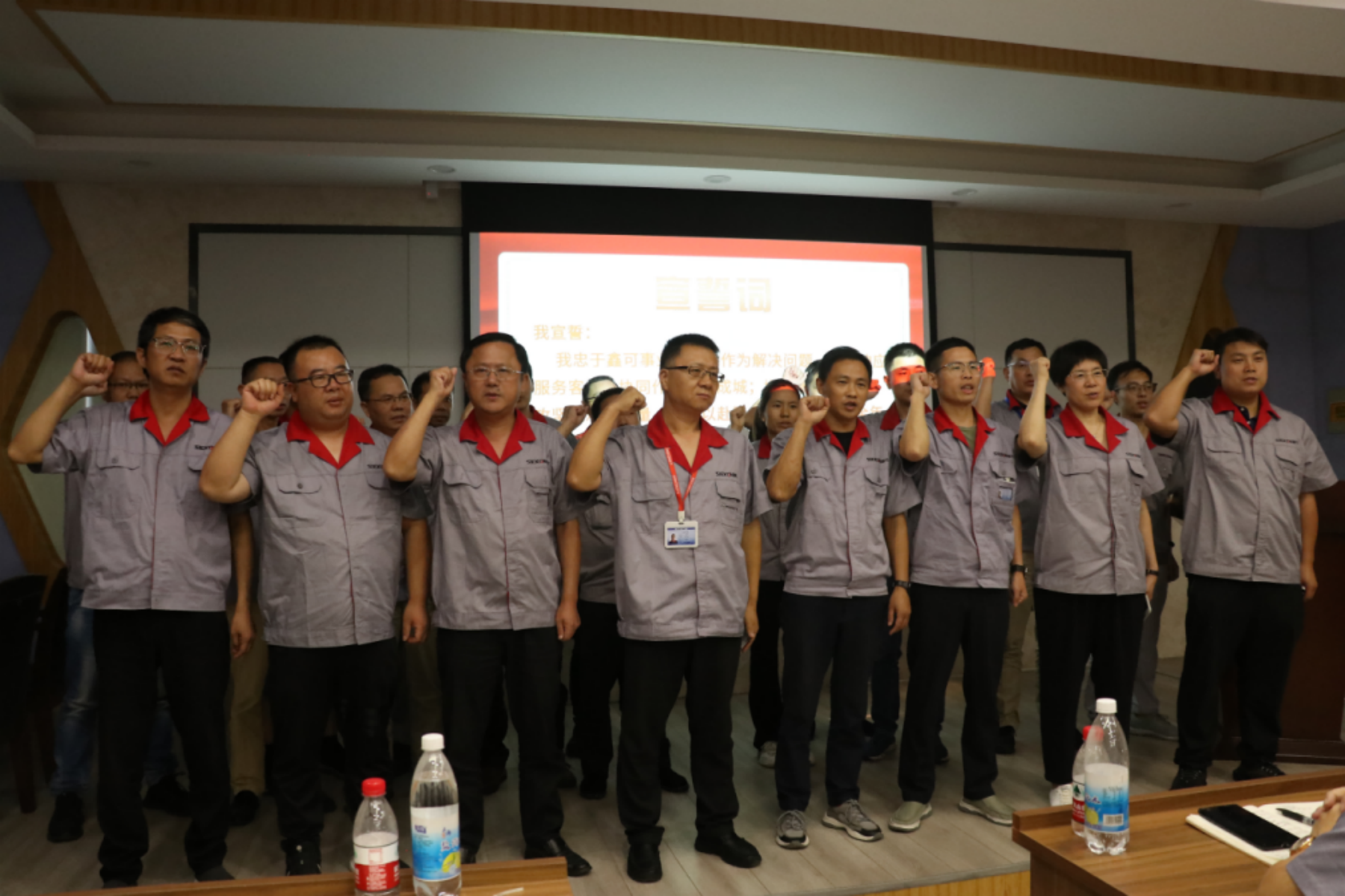 簽約儀式后,常務(wù)副總經(jīng)理馬強(qiáng)帶領(lǐng)鑫可經(jīng)營管理團(tuán)隊(duì)向公司董事會宣誓:我忠于鑫可事業(yè),主動作為解決問題,快速響應(yīng)服務(wù)客戶,協(xié)同作戰(zhàn)眾志成城; 增產(chǎn)增效保交付,攻堅(jiān)克難提質(zhì)量,全力以赴降成本,堅(jiān)決完成全年經(jīng)營目標(biāo)!