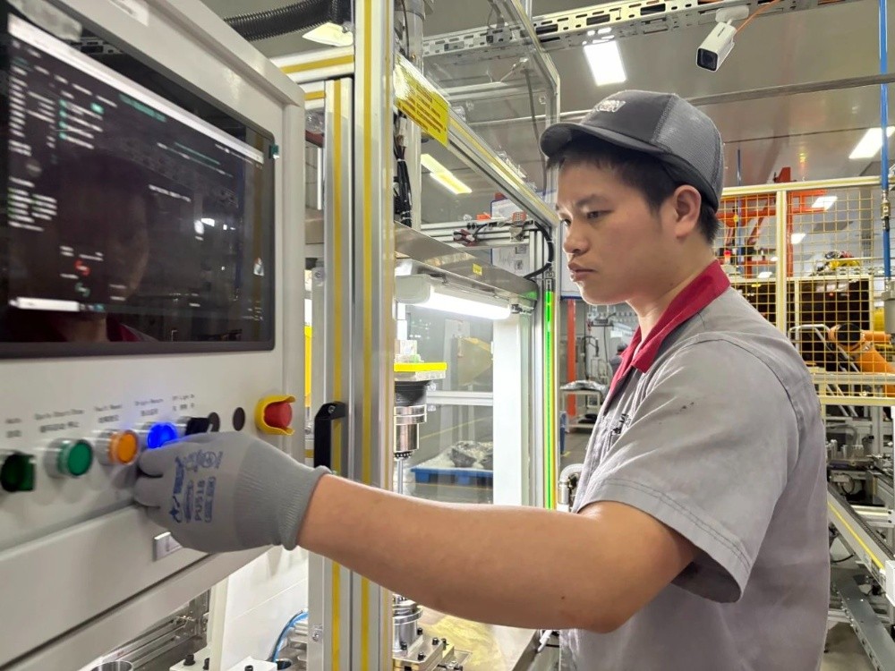 作業過程中,謝作亮不斷展現著自己的 “技術智慧”。在OP1050工位,機器運轉的轟鳴聲中,他敏銳察覺到銷軸鉚接異常。他主動與工程師組成攻堅小組,日夜鉆研,最終通過調整銷軸長度,讓鉚接恢復正常;在 OP1040作業時,他又以高度的警覺性發現銷軸放置定位工裝有掉落風險,迅速反饋后,一套規范的防護措施及時到位,消除了安全隱患。在T52項目試生產跑線階段,他更是化身“多面手”,協助工藝做測試標件和臺架磨合收集數據,對產線MES運行突發情況處理、各工位防錯措施驗證駕輕就熟。此外,他還將現場零部件管理得井井有條,把可重復使用的和不良零部件仔細歸類,不良品及時退庫,徹底杜絕了生產時混料、用錯物料的情況。