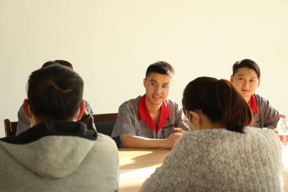 陳光耀副總經理、徐輝副總監陪同老師們現場參觀了實習生的工作和生活環境,并組織了校企雙方座談會,邀請實習學生與學校老師面對面交流。